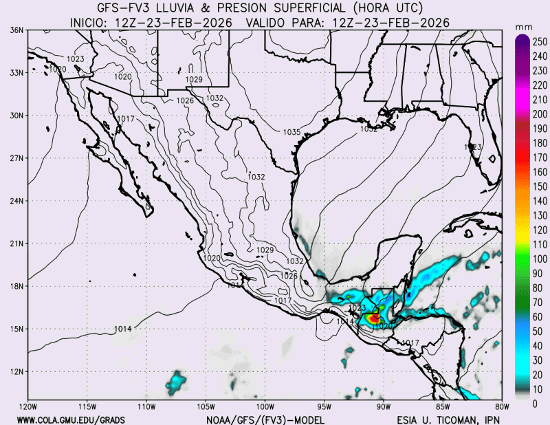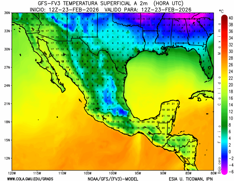 En esta imagen, se presenta el pronóstico numérico del clima atmosférico con el modelo WRF a 12km de resolución de malla en forma de un Meteograma que nos muestra el estado del clima para tres días en horario 06Z (UTC), cabe mencionar que cuantos más cercano se éste del día, más confiable es el pronóstico numérico. Para la lectura consta de lo siguiente: